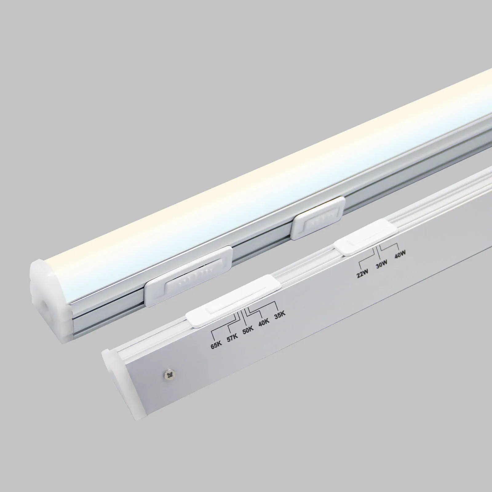 Econo Series, <b>4′</b>, Slim Integrated <b>Low Bay</b>, Up To <b>6118 lmn</b>, EZ-Select CCT: <b>3500k – 6500k</b> & Wattage: <b>22-40w</b>, <b>Frosted</b> Lens, JL-INT-4FT-ZZW-CCT