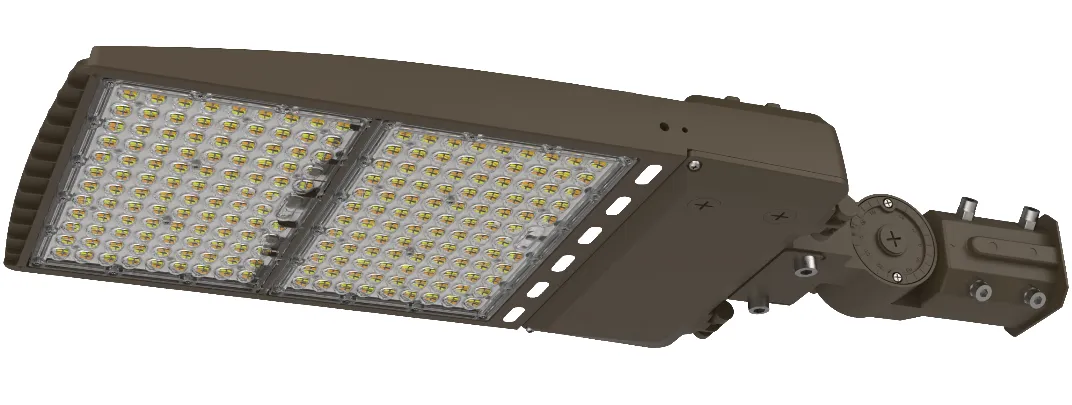 The Everlux LED Pole/Shoebox Area Light (SKU: ZEV-10049) is a commercial-grade LED fixture designed for parking lots, roadways, and pathways. This unit delivers 320W.